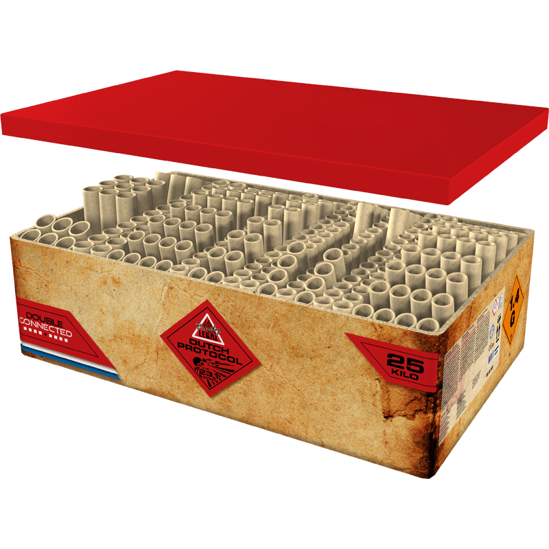 Helemaal wappie met de kleuren waar Nederland trots op is. Alle effecten, alle schietrichtingen. Gewoon grof geschut in de straat. In de Dutch protocol vuurwerk vind je de heerlijke Nederlandse kleuren: rood, wit, blauw aangevuld met oranje en goud. Hollands glorie dus. Hijs de vlag wanneer de Dutch Protocol de straat op mag.