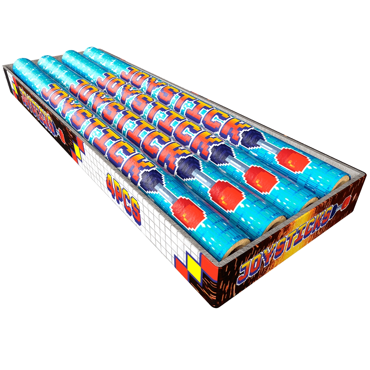 Genot in een een stokje. Dat is de belofte die deze Joysticks waar maken. Een leuke fakkel die naast een elegante vuurwaterval van sterren ook nog lichtkogels uit zijn buisje spuit. Je vind 4 Joysticks in het doosje. Dit is een leuk item voor alle leeftijden!