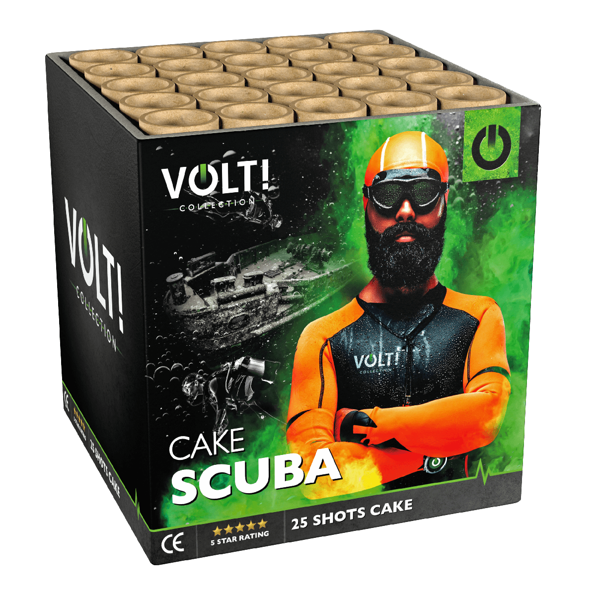 Duik onder in de wondere wereld van top vuurwerk. Deze Scuba van VOLT! is adembenemend lekker. Dikke tubes schieten omhoog en ondertussen zie je gouden, kronkelende staarten die wel van een giga-diepzee-octopus lijken. Die exploderen vervolgens in een oceaan van blinkers en gekleurde dahlia's. Tegen de diepzwarte achtergrond van de nachtelijke lucht lijken dit wel levende fluoriserende organismes uit de diepe zee. Echt Massive!